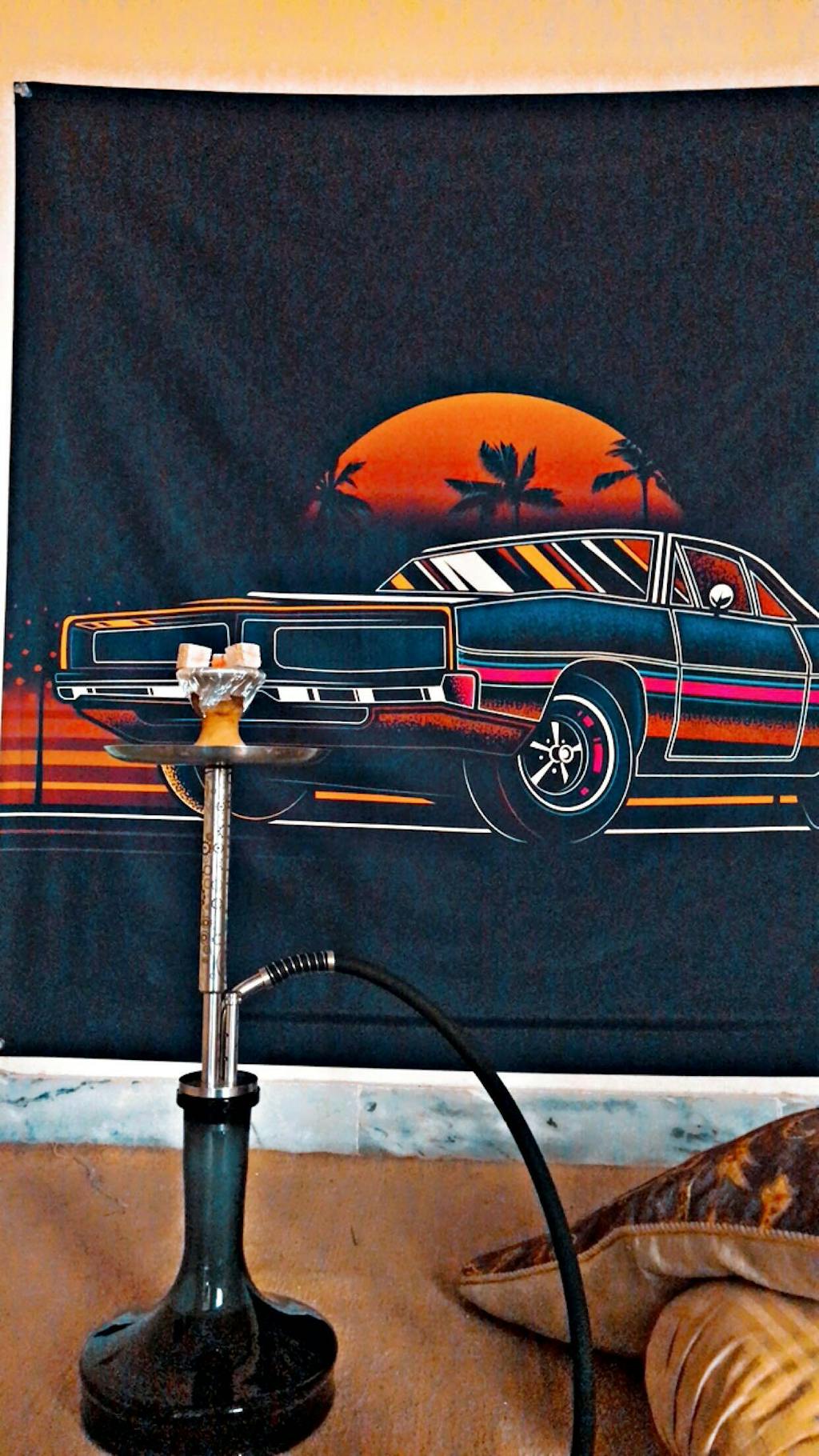 Can we just talk about how the neons in this tapestry are SURE to capture literally any pair of eyes? The blues, purples, and orange-ish reds are to die for. In a room with LED lights or surrounded by a frame of luminous fairy lights, this tapestry would turn up the mood of any room. Ofcourse, itβs even better if you are a fan of the classic muscle car. But even if not, this could be the perfect fit for a game room, or even a bedroom regardless of whether youβre a badass girl who likes dark, neon colors, or a guy whoβs all about cool aesthetics!