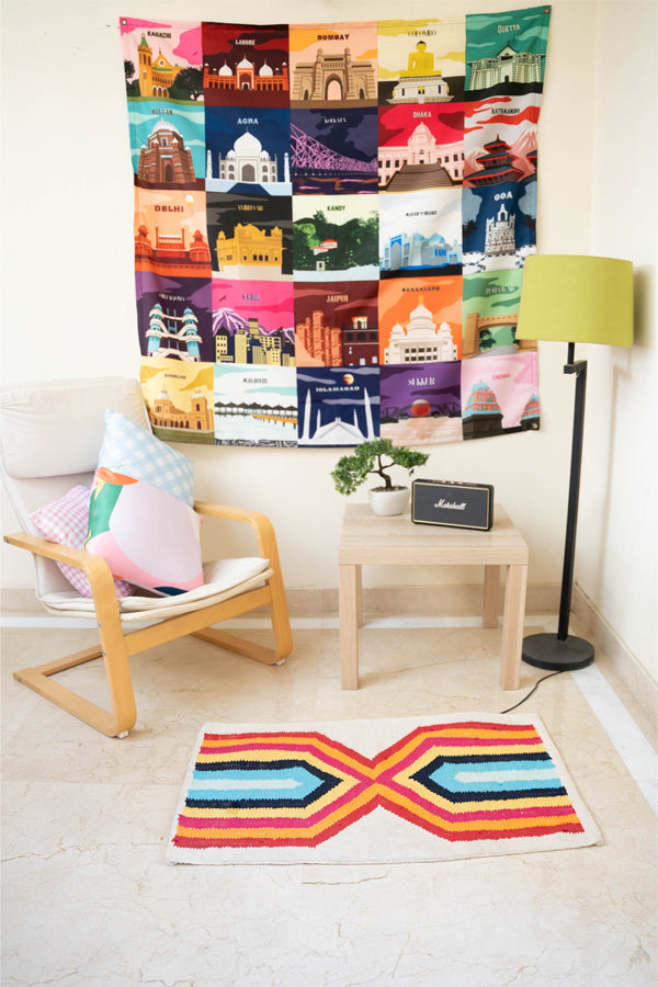 The Southasia collage tapestry is the ultimate culmination of all the wonders of Southasia coming together into one gorgeously colorful wall décor item. This tapestry could not possibly have gotten any better. From the incredible compilation of different cities’ architectural feats to shades of every possible color that exists, this tapestry is definitely created to make a statement. It is an all-encompassing choice for travel, architecture, or geography lovers, as well as the safest bet for anyone with a diverse or unique color scheme for their rooms. It doesn’t get any better than this, that’s a promise!